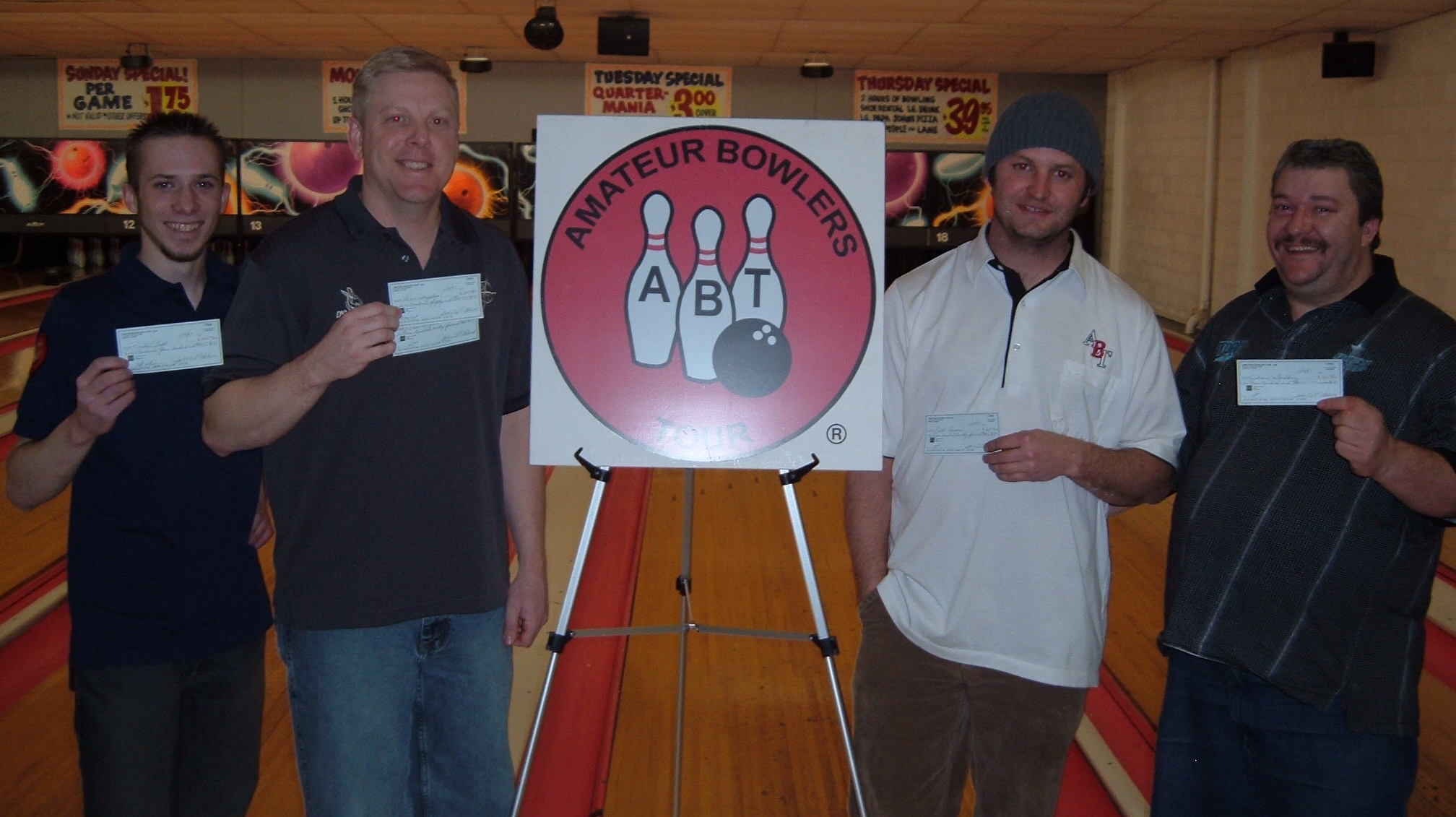 ORCHARD LANES TOURNAMENT WINNERS JAN. 13 & 14, 2007 (L to R) Randy Clift CHAMPION, Dave Ingraham 2nd, Nate Farmer 3rd, Shaun Goulding 4th ORCHARD LANES TOURNAMENT WINNERS